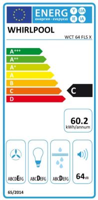 Consommation d'énergie Classe d'efficacité énergétique: C, Consommation annuelle d'énergie en kWh: 60.2 kWh, Classe d'efficacité d'évacuation de la vapeur et fumées: E, Classe d'efficacité de l'éclairage: D, Classe d'efficacité de filtration des graisses: D