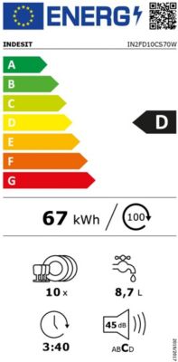 Consommation en électricité pour 100 cycles (programme éco) 67.0