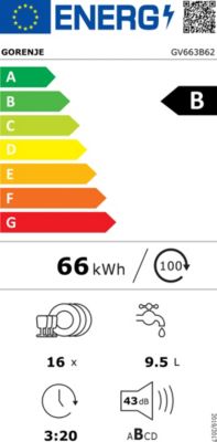 Consommation en électricité pour 100 cycles (programme éco) 66.0